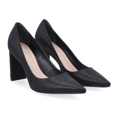 Scarpin Luz da Lua couro preto, salto alto fino de 08cm, bico fino.