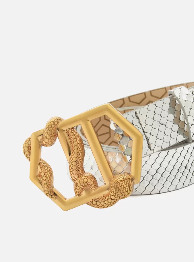 Imponente e trendy! O cinto aposta na textura snake e nos metais luxuosos e é a escolha perfeita para produções noturnas. Combine com alfaiataria e sandália de salto fino para um look sofisticado.