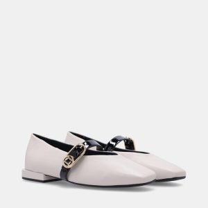Scarpin Luz da Lua em couro. O modelo tem bico arredondado e salto médio bloco. Possui sobreposição em couro Ravena e aplicação de enfeite em tira de couro com metal exclusivo Luz da Lua, na parte frontal. Tem recorte nas laterais e peito do pé aberto.