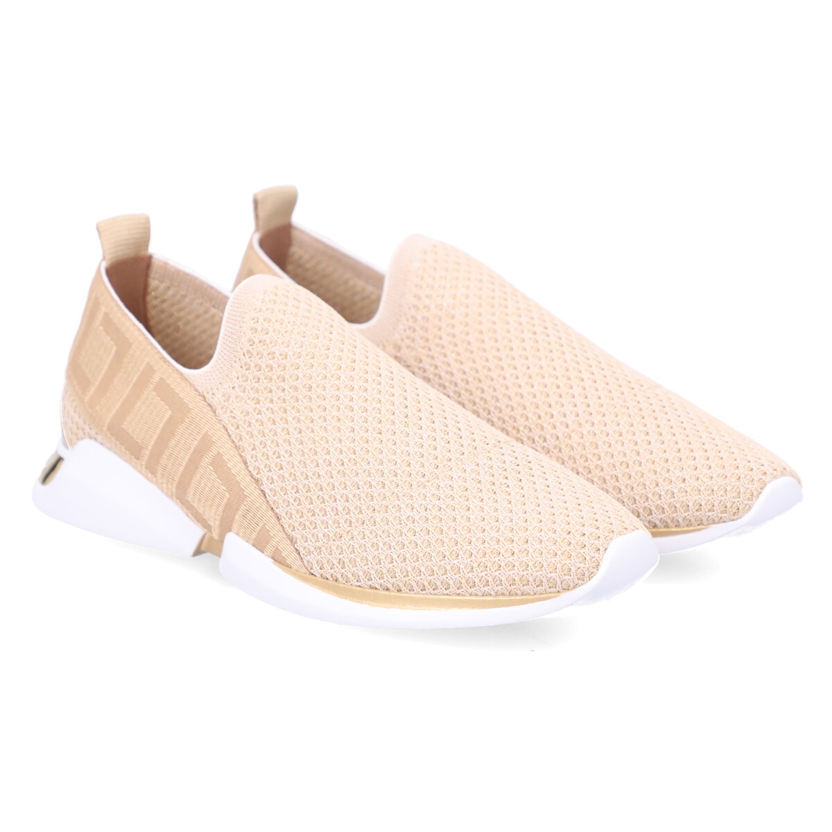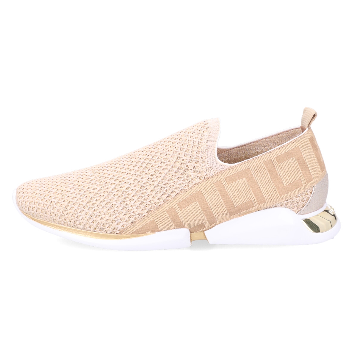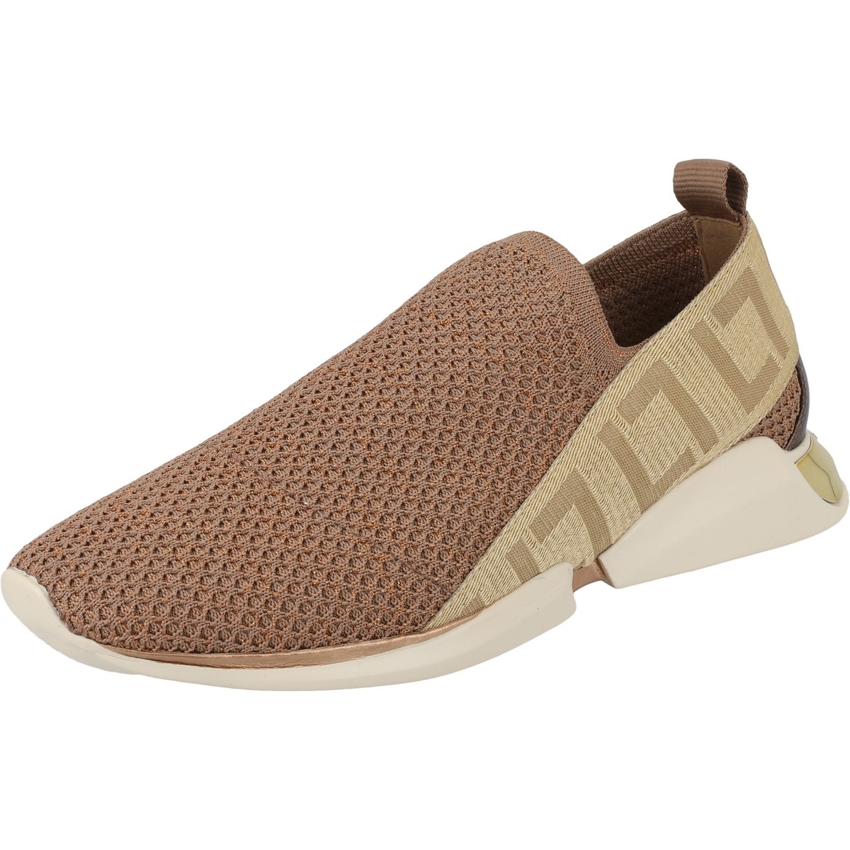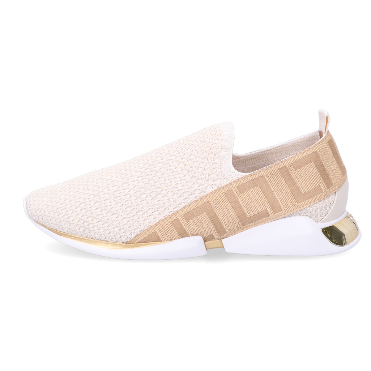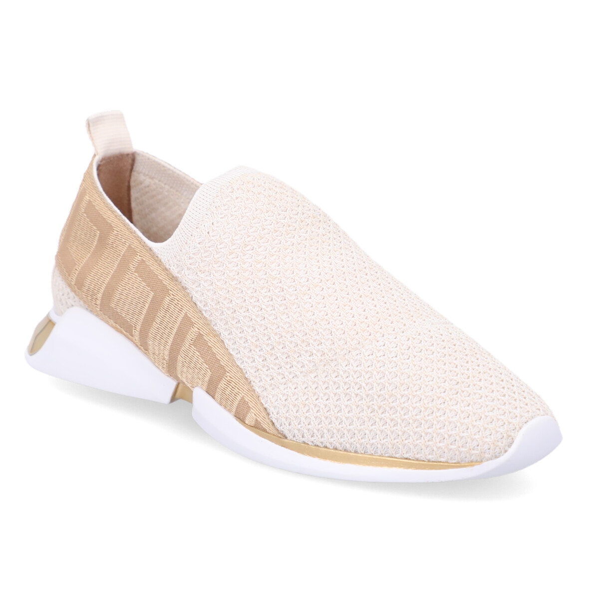 Tênis Space em knit. O modelo possui solado extraleve branco com aplicação de placa dourada Luz da Lua na parte traseira e bico redondo. Tecido macio que se ajusta ao pé e uma faixa em gorgorão na cor Areia com a identidade exclusiva da marca. Detalhe para peça de couro no calcanhar e puxador que facilita o calce.